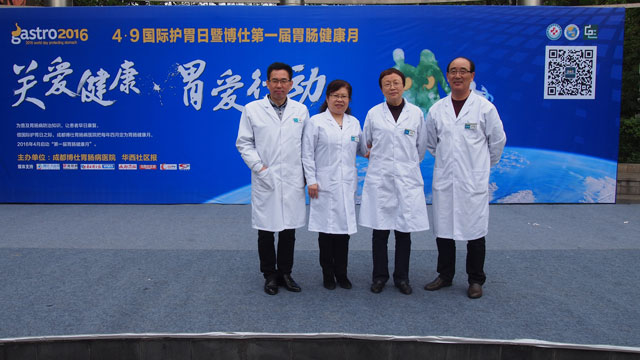 (图:王主任与博士专家一同参与国际护胃日公益活动)
